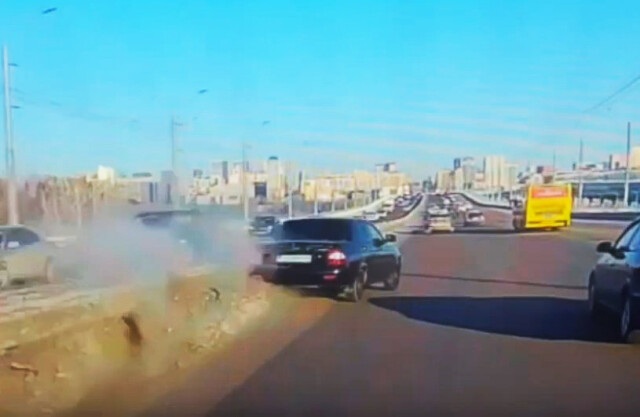 На Октябрьском мосту в Новосибирске «Ладу Приору» занесло при перестроении, в результате чего она врезалась в разделительное ограждение. Водитель не стал останавливаться и продолжил движение.