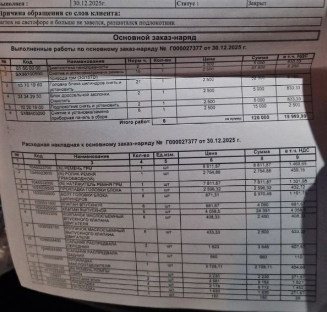 Основные проблемы начались в ноябре 2025 года, практически сразу после истечения заводской гарантии, на пробеге всего 67 000 километров.