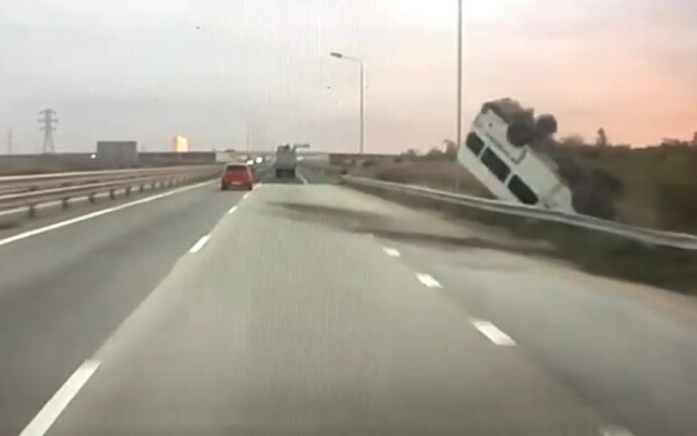 ДТП произошло под Симферополем. Водитель легкового автомобиля решил поучить водителя «Газели», в результате чего тот не справился с управлением, наехал на ограждение, вылетел в кювет и перевернулся.
