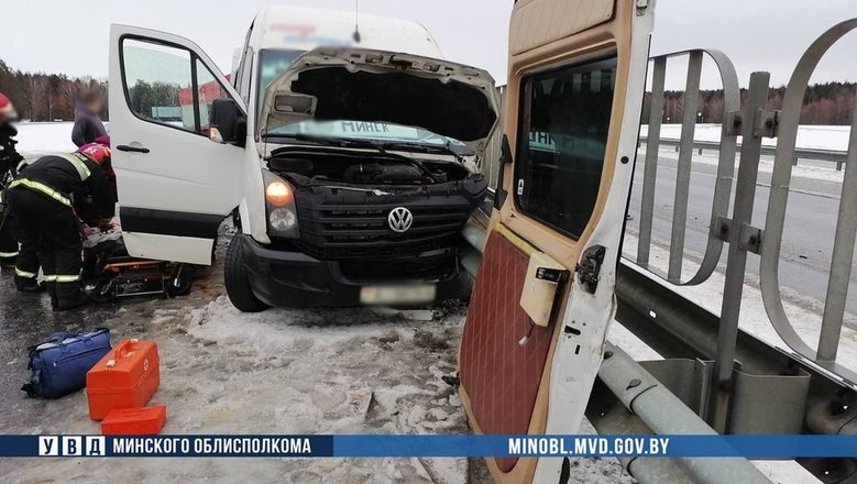 Маршрутка с пассажирами врезалась в дорожное заграждение под Березино.