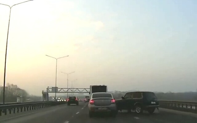 ДТП на Северной окружной дороге Рязани. «Шашечник» на «Ниве» при перестроении ушел в занос и столкнулся с автомобилем Renault Logan. Момент столкновения запечатлел видеорегистратор очевидца.