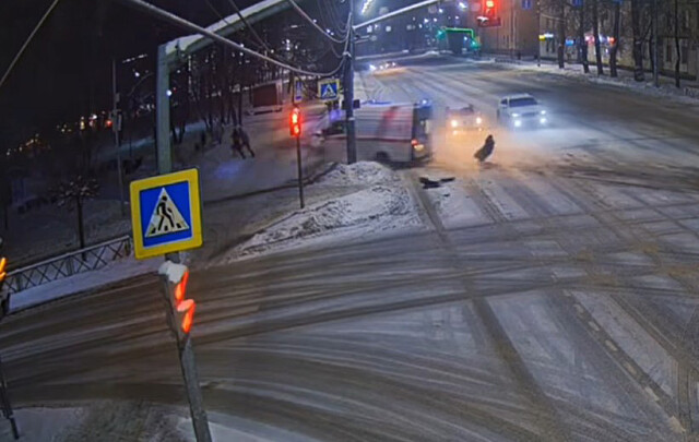 Скорая едва не сбила пешеходов в результате ДТП на перекрестке в Ярославле