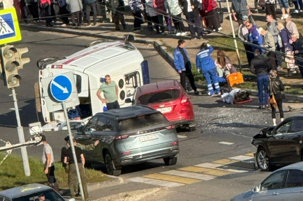 13 сентября утром на перекрестке улице 50-летия Победы и Моторостроителей столкнулись скорая помощь и легковой автомобиль. От удара спецавтомобиль опрокинулся.