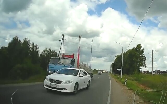 ДТП произошло возле села Бобровка в Алтайском крае. Водитель белой «Тойоты» обгонял грузовик и подрезал автомобиль с видеорегистратором, в результате чего тот вылетел во встречный кювет. По словам автора, немного пострадала машинка, но славу богу никто не пострадал.
