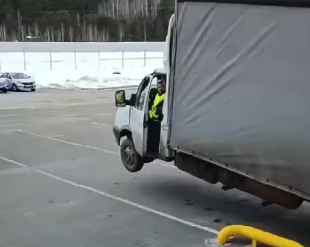 Курьезный случай на разгрузке. Водитель «Газели» пытался выгрузить барабан, который весит 3200 кг и вот случилась такая оказия. Как вышел из ситуации водитель, не сообщается.
