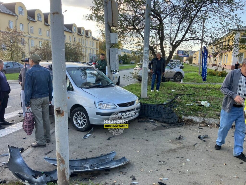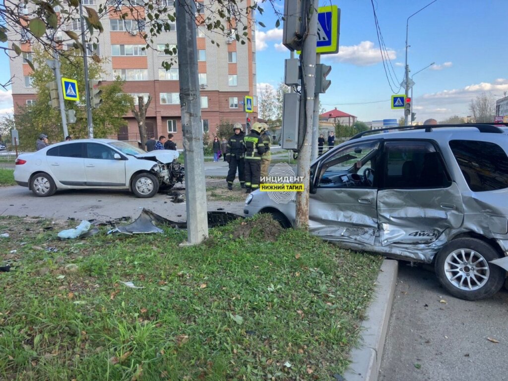 ДТП произошло на перекрестке Вагоностроителей — Тимирязева в Нижнем Тагиле. 27-летний водитель автомобиля Тoyota Corolla пытался проскочить перекресток на красный и столкнулся с автомобилем Renault Fluence, 67-летний водитель которого, судя по записи, пытался проскочить перекресток на жёлтый через сплошную. От удара «Тойота» вылетела с дороги на тротуар и врезалась в столб.