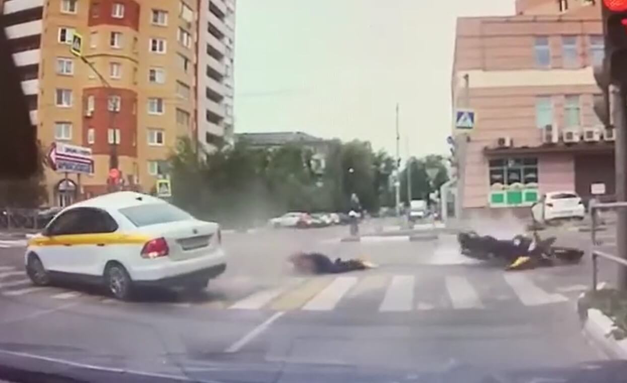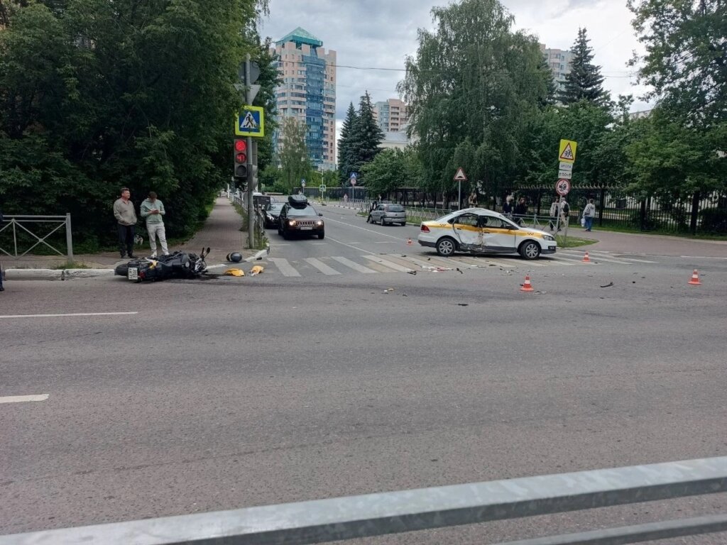 Такси и мотоцикл столкнулись на перекрестке в Подмосковье