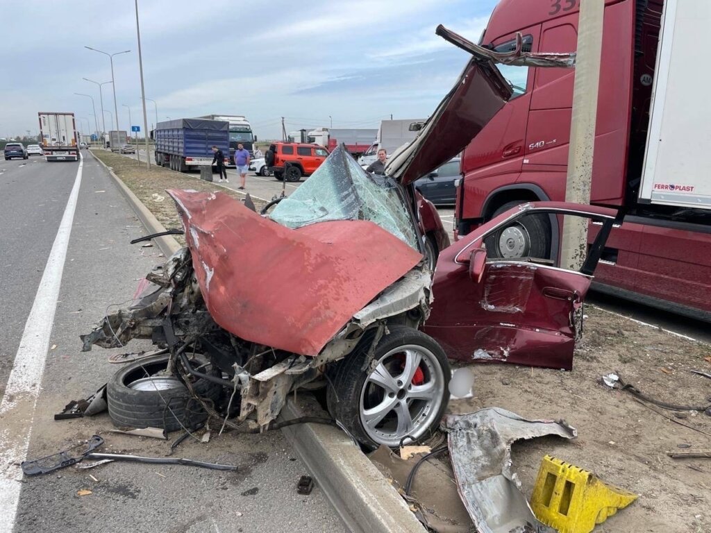 ДТП произошло 23 сентября утром возле хутора Ленина на автодороге Краснодар — Кропоткин. 27-летний водитель «Тойоты» не выбрал безопасную скорость, наехал на бордюр, после чего врезался в стоящую на территории АЗС большегрузную фуру Volvo, а также в фонарный столб.