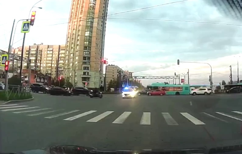 18 мая вечером на пересечении Индустриального проспекта и Хасанской улицы в Красногвардейском районе Петербурга произошло трагическое ДТП. Патрульный автомобиль под управлением 37-летнего инспектора ППС двигался с включёнными проблесковыми маячками, выехал на перекрёсток на запрещающий сигнал светофора и столкнулся с мотоциклом.