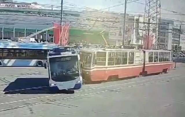 Троллейбус и трамвай не разъехались на перекрестке в Петербурге