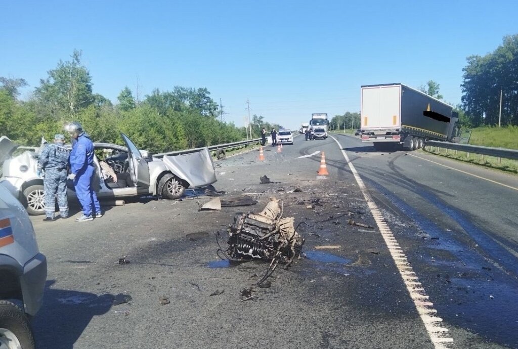 ДТП произошло 25 мая на трассе М-5 «Урал» в Сызранском районе Самарской области. Легковой автомобиль Ford Focus столкнулся с большегрузом Mercedes-Benz. От удара у легковушки вырвало двигатель, а кузов сильно смяло.