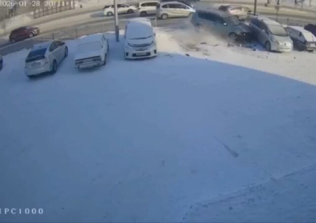 ДТП произошло в Улан-Удэ. Водитель Mitsubishi уходил от столкновения с попутным автомобилем, снёс ограждение, въехал на парковку и протаранил стоящую машину. Происшествие попало в объектив камеры уличного наблюдения.