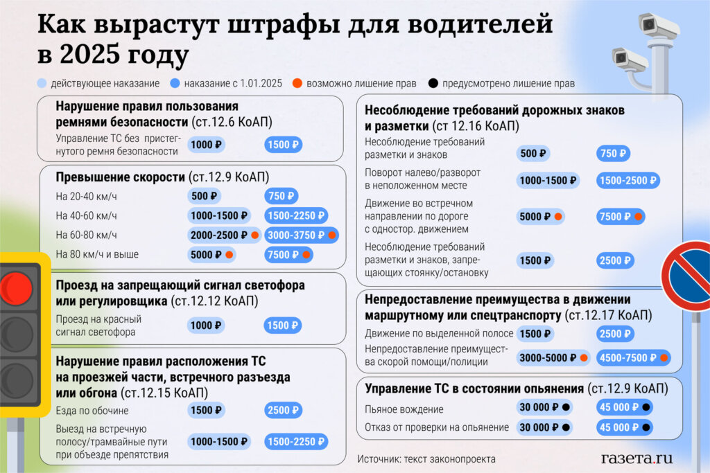 Во-первых, планируется значительное повышение размеров штрафов за различные виды нарушений ПДД.