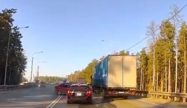 ДТП произошло на шоссе Ленточный Бор в Барнауле. Renault Logan вылетел на встречную полосу и столкнулся с легковым автомобилем, а также с грузовиком. Видеорегистратор очевидца запечатлел момент столкновения.