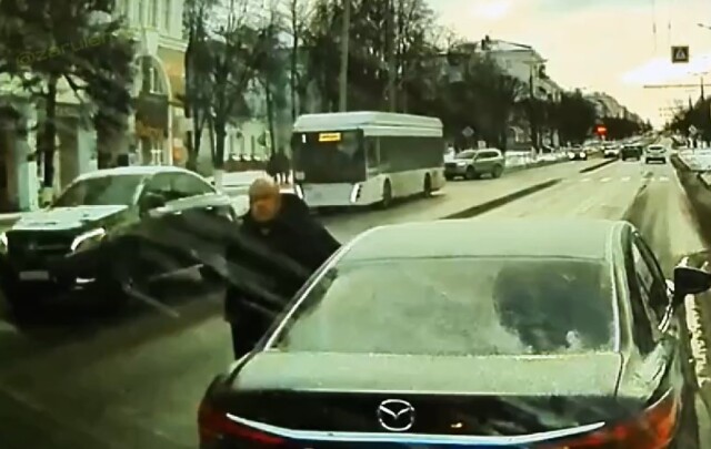 В Чебоксарах водитель «Мазды» обиделся и решил проучить маршрутчика, у которого в салоне находилось много людей. Водитель маршрутки не стал рисковать их жизнью и здоровьем, и въехал в легковушку.