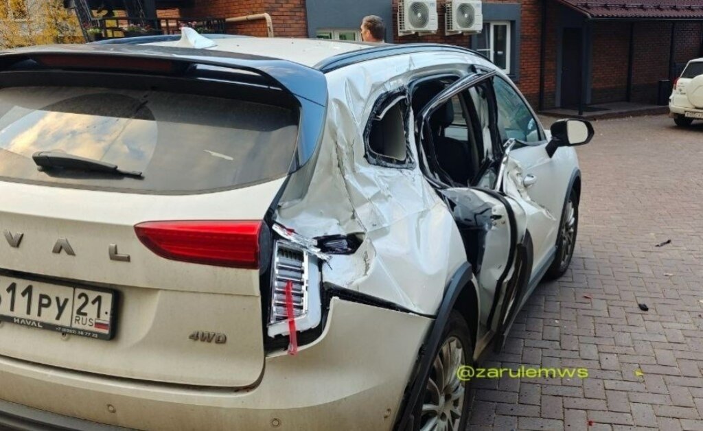 ДТП произошло в Чебоксарах на улице Сверчкова. 47-летний местный житель за рулем кроссовера Toyota Fortuner снес забор, прилетел в соседний двор и врезался в припаркованный Haval.