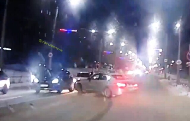 В Чебоксарах водитель автомобиля BMW решил подрифтовать и войти с юзом в поворот, но что-то пошло не так, в результате чего он протаранил встречную «Гранту».