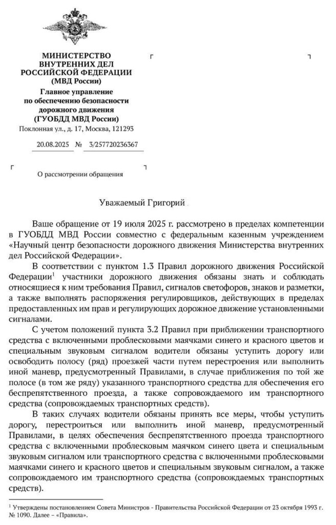 Таким образом, обязанность пропускать транспортные средства с работающим спецсигналом сохраняется, но её выполнение должно осуществляться строго в рамках действующих правил дорожного движения.
