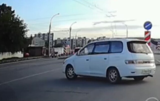 На Ширямова в Иркутске водитель минивэна пытался развернуться и столкнулся с другим автомобилем. Момент столкновения зафиксировал видеорегистратор очевидца.