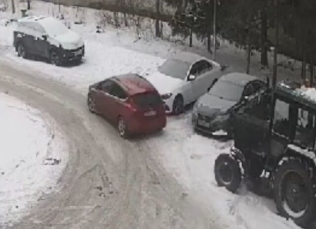 5 января в 11:40 во дворе дома по улице Павлюхина в Казани 25-летний пьяный житель Нижнекамска, управляя автомобилем Ford Focus, столкнулся с припаркованным трактором, а затем с легковым автомобилем, после чего скрылся с места ДТП.