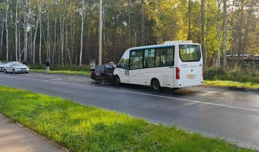 Водитель легковушки получил травмы и был госпитализирован. К счастью, в салоне маршрутки никого не было — автобус только готовился к рейсу. Водитель не пострадал.