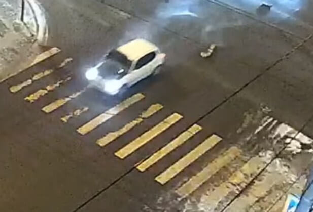 ДТП произошло на перекрестке Сурикова — Ленина в Красноярске. Легковой автомобиль наехал на люк и остался без бампера. Также у легковушки открылся капот. Происшествие попало в объектив камеры уличного наблюдения.