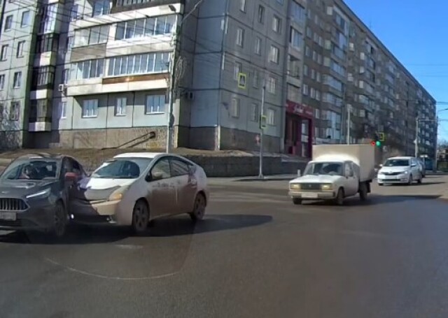 В Красноярске таксист грубо нарушил ПДД и спровоцировал столкновение трех автомобилей