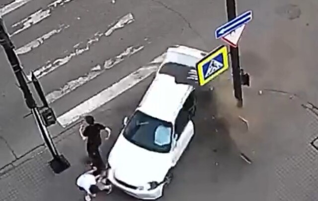 Пешеходов доставили в больницу и после осмотра отпустили домой. В автомобилях тоже никто не пострадал. Камера запечатлела момент столкновения.