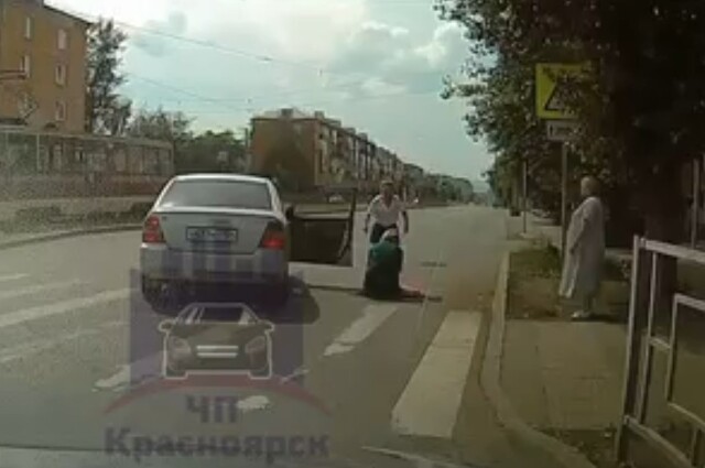 ДТП произошло на перекрестке Мичурина — Щорса в Красноярске. Водитель легкового автомобиля поворачивал направо и сбил пешехода на пешеходном переходе. Момент наезда зафиксировал видеорегистратор двигавшейся позади машины.