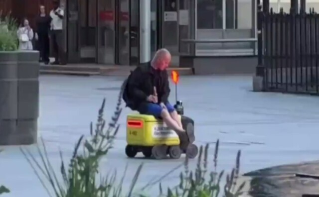 В Москве пьяный мужчина решил прокатиться на роботе-доставщике и поплатился за это