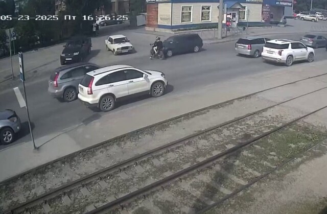 Мотоциклист и его 14-летний пассажир на скорой были доставлены в больницу. У водителя мотоцикла не было прав. Момент ДТП попал в объектив камеры.
