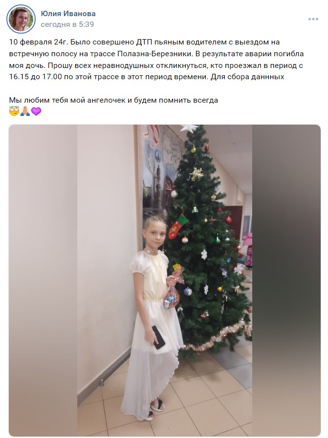 В Пермском крае пьяный водитель выехал на встречную полосу: погибла 12-летняя девочка