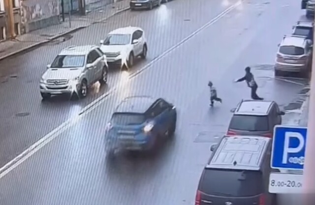 На улице Херсонской в Санкт-Петербурге 3-летний мальчик выбежал на дорогу и попал под колеса автомобиля Renault. На видео с камеры наблюдения видно, как отец пытался схватить малыша, но в руке у него остался лишь шарф.