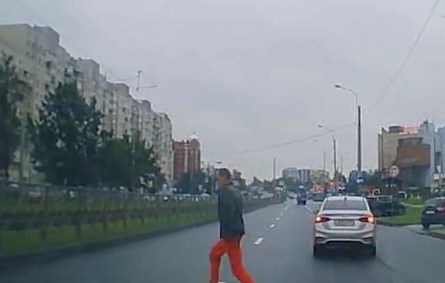 46-летнего мужчину в тяжелом состоянии доставили в больницу. Полиция проводит проверку. Момент наезда запечатлел видеорегистратор очевидца.