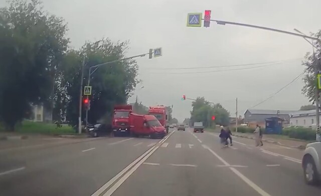 В Подольске грузовик столкнулся с несколькими стоящими на светофоре автомобилями