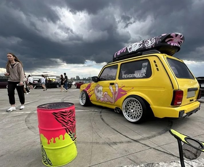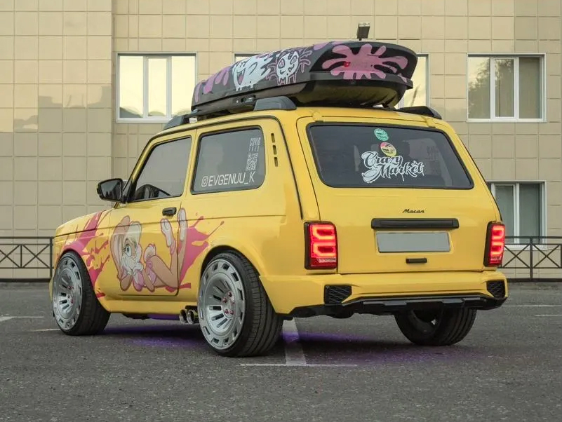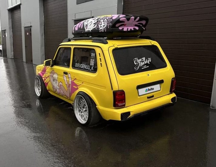 По словам продавца, проект воплощался в жизнь в течение четырех лет, и суммарные вложения превышают текущую цену автомобиля. Кузов «Нивы» окрашен в желтый цвет. Кроме этого машина имеет только задний привод и в неё установили инжекторный двигатель.