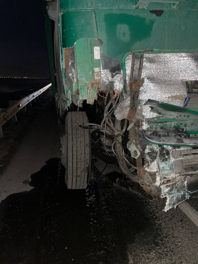 ДТП произошло 23 февраля в 21:50 на автодороге Ростов-на-Дону — Азов. 39-летний водитель большегруза МАЗ в составе полуприцепа совершил наезд на стоящий в правой полосе легковой автомобиль Geely.