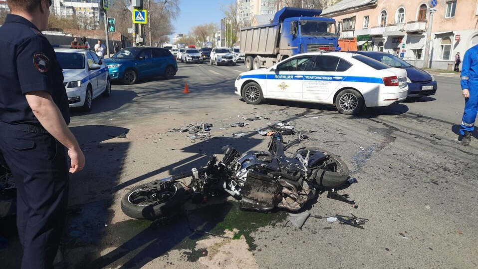 В Самаре водитель автомобиля «Лада Гранта» поворачивал налево и не пропустил мотоцикл