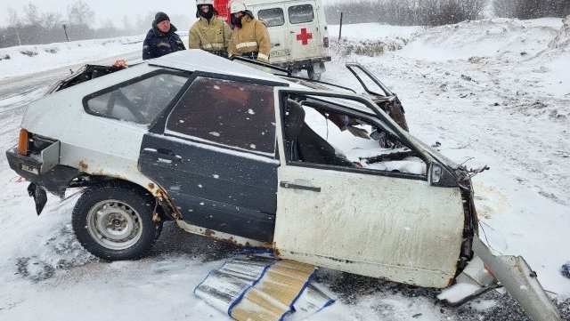 По информации ГУ МВД России по Самарской области, 39-летняя женщина, находившаяся за рулём легковой машины ВАЗ-21093, следуя по автодороге М-5 «Урал» со стороны Самары в направлении Пензы, в условиях снегопада не справилась с управлением, и на 901 километре трассы выехала на полосу встречного движения, где лоб в лоб столкнулась с седельным тягачом ДАФ с полуприцепом «Шмитц».