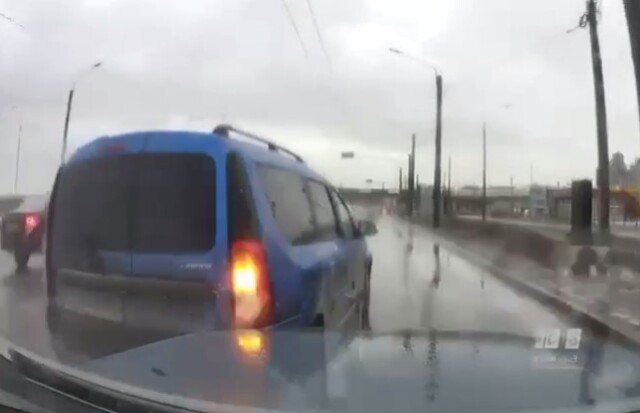 Проспект Обуховской Обороны в Санкт-Петербурге. По словам автора ролика, водитель «Ларгуса» совершил ДТП и скрылся.
