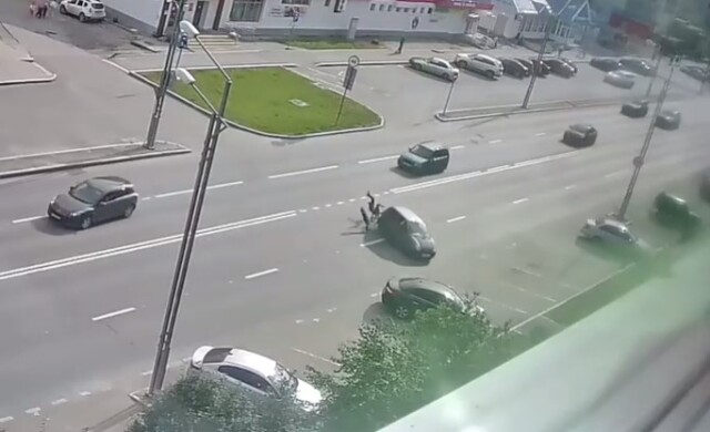 Школьник получил ушиб грудной клетки и колена, ему назначено амбулаторное лечение. Момент столкновения попал в объектив камеры.