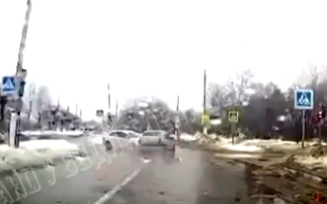 В Твери водитель «Логана» пытался проскочить на запрещающий сигнал светофора и попал в ДТП