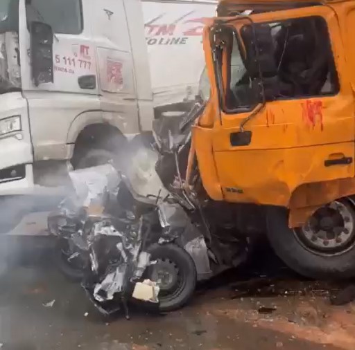 Одну из машин зажало между самосвалом и фурой. Погибли мужчина и женщина. Информация о пострадавших пока уточняется.