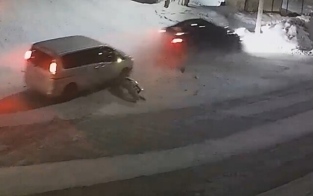 Камера уличного наблюдения зафиксировала момент ДТП на улице Речников в Усть-Куте. Водитель седана пытался обогнать на перекрестке минивэн, который поворачивал налево, столкнулся с ним, после чего врезался в столб.
