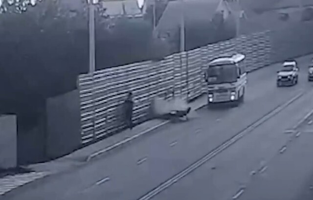 Мотоциклист получил тяжелые травмы и скончался в больнице. Момент столкновения попал в объектив камеры уличного наблюдения.