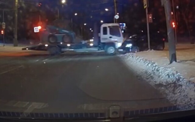 «Вину не признал»: легковой автомобиль и эвакуатор столкнулись в Красноярске