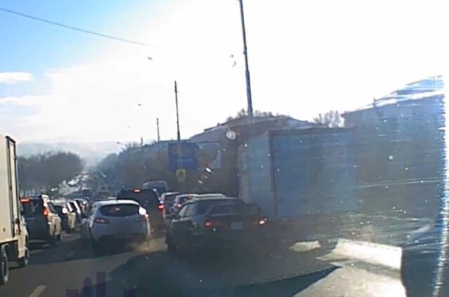 ДТП на Мичуринском мосту в Красноярске. Водитель «Хонды» не успел затормозить и устроил «замес». Происшествие попало в объектив видеорегистраторов.