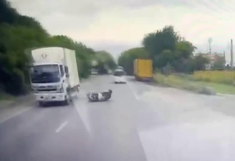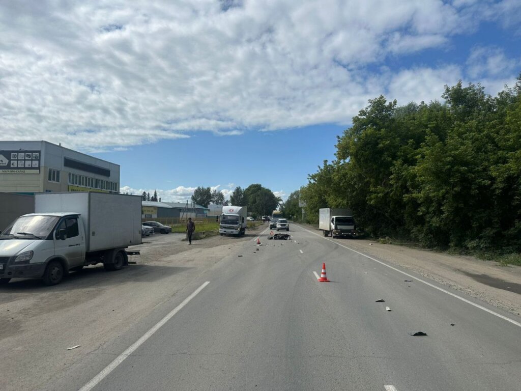 ДТП произошло в Ленинском районе Новосибирска. Мопед Wuben столкнулся с попутным грузовиком Hino, после чего опрокинулся и попал под колеса ГАЗели.