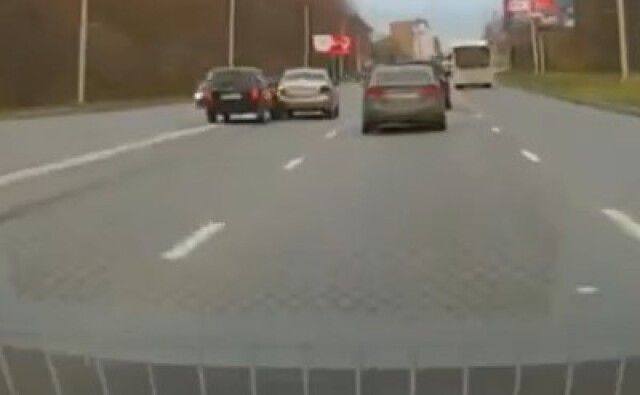 ДТП произошло у «Рощи» в Чебоксарах. Водитель автомобиля Volkswagen Polo решил перестроиться в левый ряд, по которому ехала «Калина». В результате он в буквальном смысле вытолкнул автомобиль на встречную полосу. К счастью, никто не пострадал.