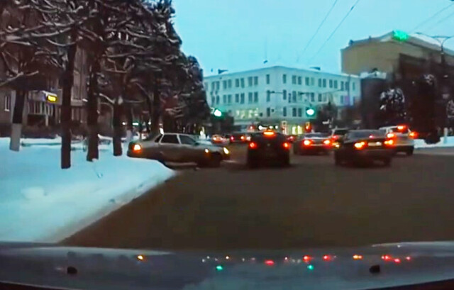 На проспекте Ленина в Чебоксарах водитель «Приоры» не глядя выезжал со двора навстречу потоку и столкнулся с иномаркой. Происшествие попало в объектив видеорегистратора очевидца.